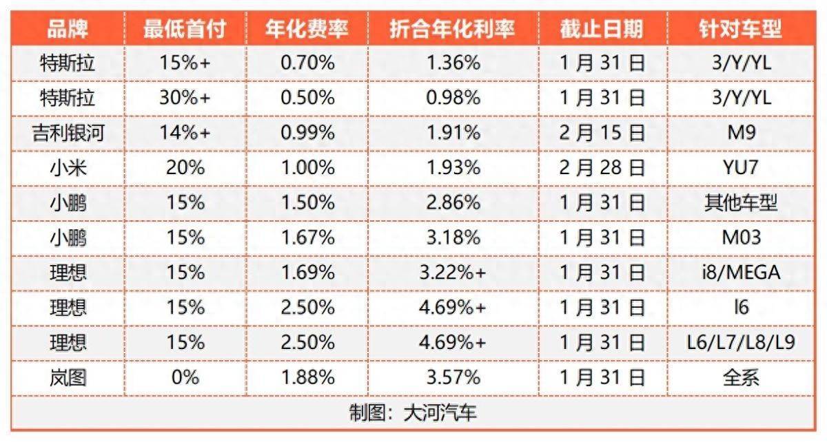 紧随其后,小米在1月中旬为旗下YU7车型推出类似政策,起步首付压到5万元以下。此后理想、小鹏、岚图、吉利银河等品牌纷纷跟进,基本覆盖旗下全系产品。